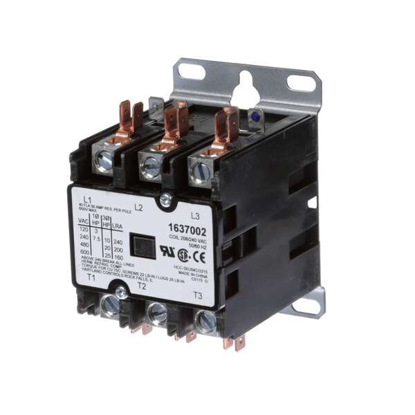 OEM Garland replacement contactor for commercial cooking equipment. 240V, 3-pole configuration. Used in Garland ranges, fryers, and griddles to switch high-current loads. Part number: 1637002.
